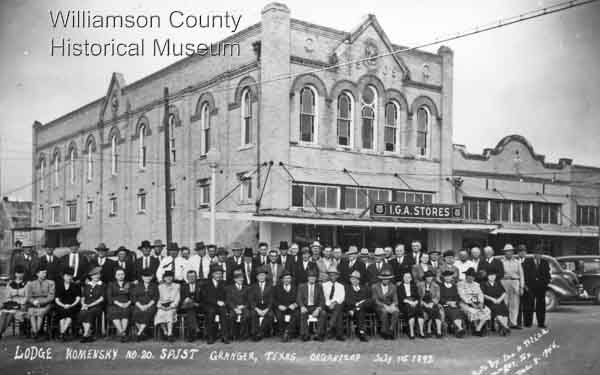 After Pavel died in 1907, the SPJST purchased from Rozina the property on West Davilla Street in Granger where the new lodge found its permanent second-story home. The Machu name can still be found on one of the front door thresholds of this city block.